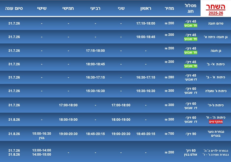 אנו מאמינים שמקצוענות מתחינה מגיל קטן, הקניית המיומנויות והרגלים נכונים הינם קריטיים ונלמדים החל מגיל הגן.